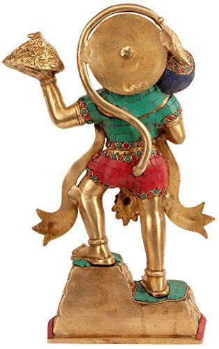 - Standing Hanuman Statue - Brass, Turquoise Work - Hindu Deity Home Decor temple offering Sculptures