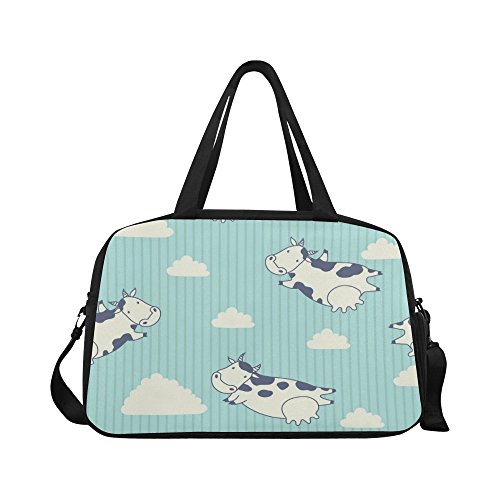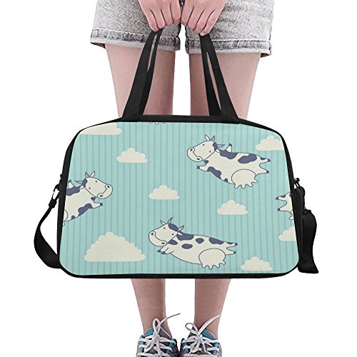 (InterestPrint)/Accessories/Luggage, Bags Travel/DIRECT FROM USA/InterestPrint Travel Duffel Tote Bag with Shoes Compartment for Women Men Cows Flying in the ...