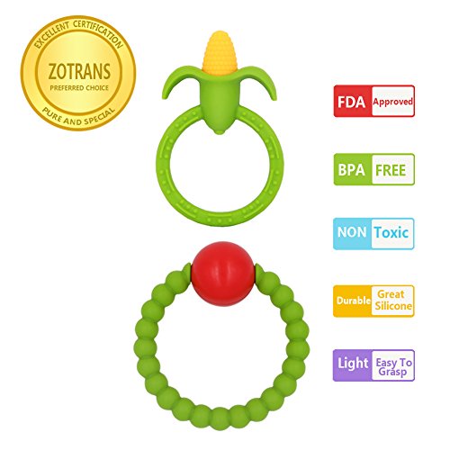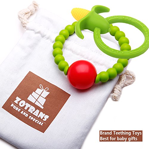 Studio : ZOTRANS Publisher : ZOTRANS Binding : Baby Product Product Description ◆Looking for best soothing pain relief for your teething baby! ◆Are you worried about your baby throwing tantrums due to the discomfort associated with teething? ◆Introducing our Soft non-toxic silicone Baby Teether Necklace to soothe and relieve your baby's teething discomfort. ◆Teething Rattles ring : Rattling beads for auditory stimulation,Vibrant colors encourage visual perception Various textures for tactile development,Colorful click clack beads assist hand/eye coordination ◆Cute Corn Ring : styling can attract the attention of the baby. The handle is just right for baby to hold, and the size is good for them to chew.Baby loves the bright colors and the fruity shapes. ◆100% Food Grade silicone teething toothbrush for kids 3-12 months of age, which mom and baby loves.Breastfeeding moms enjoy giving babies little hands something to grab onto and tug on to promote longer feedings while keeping your babies hands busy and focused. ◆All babies instinctively want to chew on whatever they can get their little hands on when the teeth start to grow. At this moment,We can provide Baby Teether Necklace which Made from soft, chewable, baby-safe silicone,Soothes baby's sore gums , Helps baby with coordination by providing unique designs and colors to peak your baby's Interest Provides closer bonding experience between mother and baby.