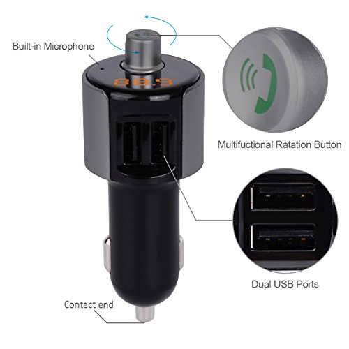 Perbeat Wireless Car Bluetooth FM transmitter Radio Adapter Car Kit with 3.4A Dual USB Car Charger Music Controls & Hands-Free Calling C27