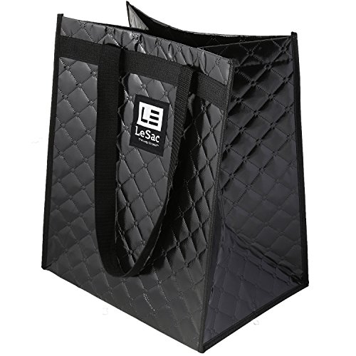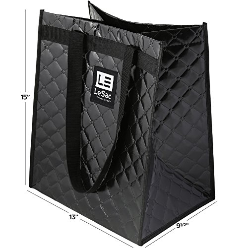 Le Sac Fashionable Quilted Reusable Grocery Bag Heavy Duty Shopping Tote Bag Large Bag With Reinforced Handles and fold-able Hard Bottom Base for Easy Loading and Unloading - 2 Pack