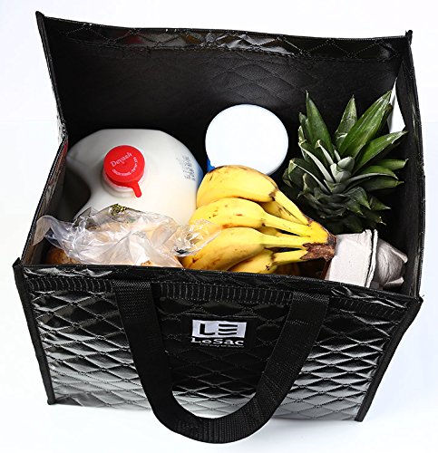 EXTRA LARGE SIZE AND WIDE WIDTH allows you to carry more items in one bag VS. lots of FLIMSY SHOPPING BAGS. Size: 13" wide x 15" high x 9.5" deep (inches) Care: Wipe clean with a damp cloth