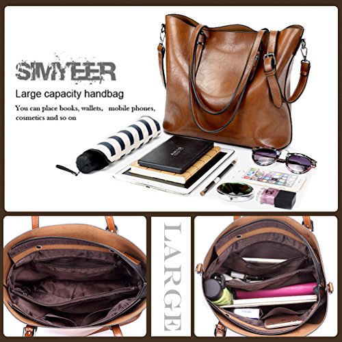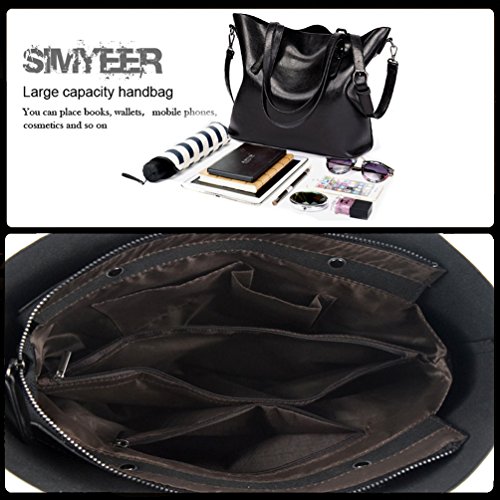 -. Brand : SiMYEER -. Department : womens -. Feature : MATERIAL: High Quality PU Leather / CLOSURE: Top Zipper Closure / DIMENSIONS: 13"W x 5.2"W x 11.4"H, Strap Drop Length: 9.1" / INTERNAL:1 side zipper pockets for wallets ?1 middle zipper pockets? 2 compartments open pockets for keys/card. All stuff can be well organized inside. / FEATURES: Decorative Gold-tone Hardware, Zip-pockets in Middle, Detachable Shoulder Strap and Top-zipper Closure -. ProductGroup : Shoes -. ProductTypeName : HANDBAG -. Title : SiMYEER Women Top Handle Satchel Handbags Shoulder Bag Top Purse Messenger Tote Bag