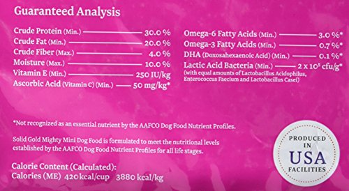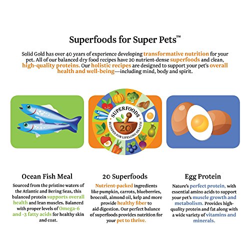 -. Binding : Misc. -. Brand : Solid Gold -. Feature : Small breed holistic potato free dry dog food recipe specially crafted for small breed dogs of all life stages, including puppy and senior / Carefully curated blend of 20 nutrient dense Superfoods provide a powerful source of natural vitamins and nutrients to nourish your dog / Made with real, lean and palatable bison / Small kibble packed with essential nutrients and healthy fiber to aid in proper digestion / Free from fillers like corn, wheat and soy; no artificial preservatives -. Label : Solid Gold Pet LLC -. Manufacturer : Solid Gold Pet LLC -. Model : 15104 -. MPN : 15104 -. PackageQuantity : 1 -. PartNumber : 15104 -. ProductGroup : Pet Products -. ProductTypeName : PET_SUPPLIES -. Publisher : Solid Gold Pet LLC -. Studio : Solid Gold Pet LLC -. Title : Solid Gold Holistic Dog Food for Small & Toy Breeds, Dry and Wet with Superfoods