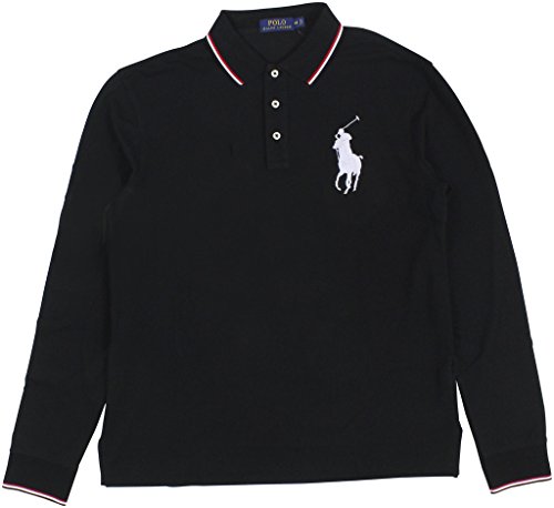 Polo Ralph Lauren Men's Long-Sleeve Mesh Big Pony Polo Shirt Medium Polo Black