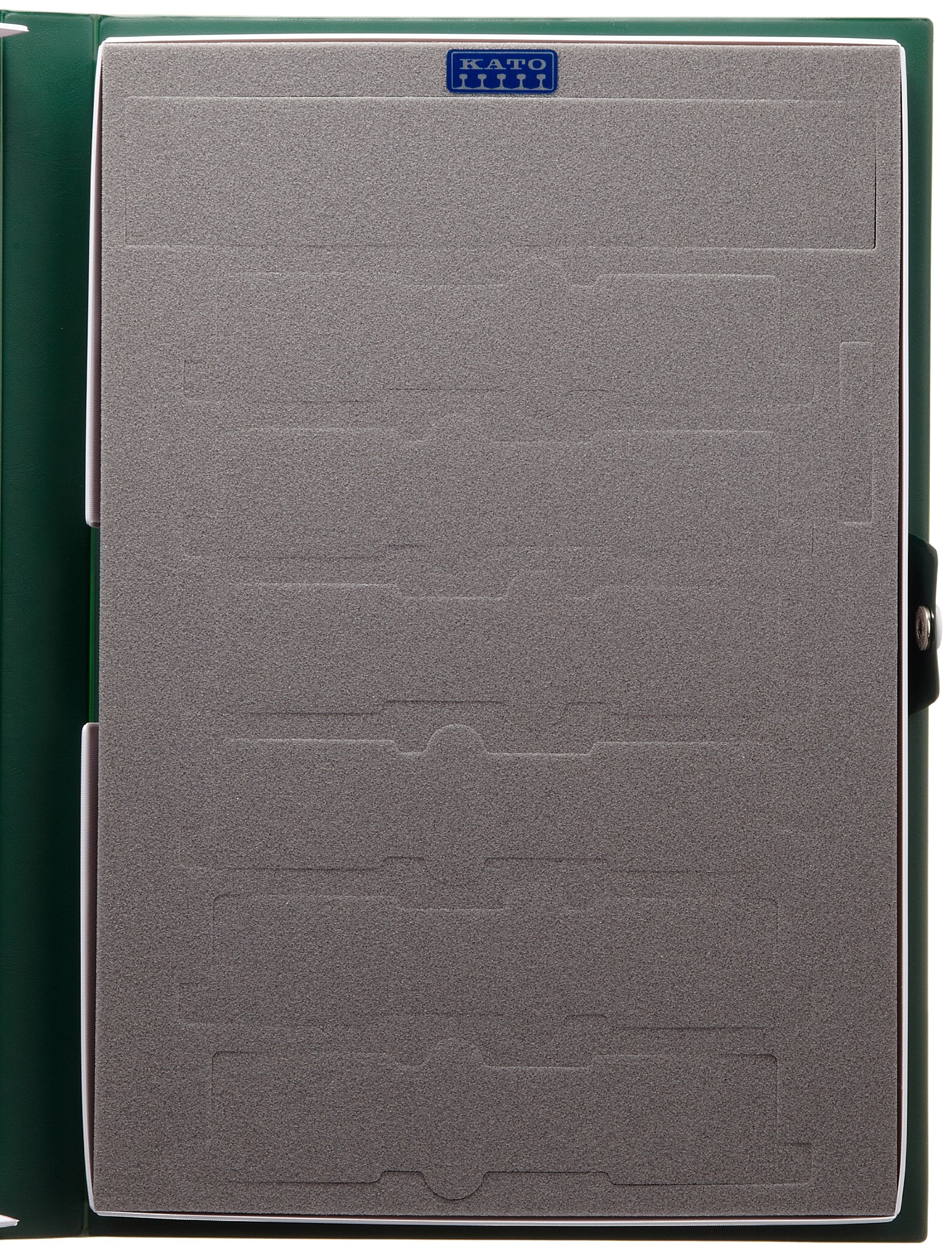 It is a book type case dedicated to N gauge, which is extremely useful for carrying, storing and organizing vehicles.
