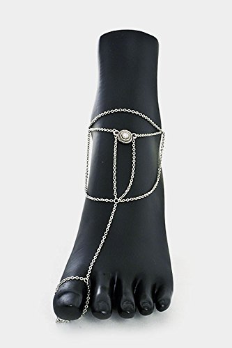 -. Title : GlitZ Finery Nice Anklet Ankle Toe Bracelet with Detailed Round Ornate and Ac (Rhodium)