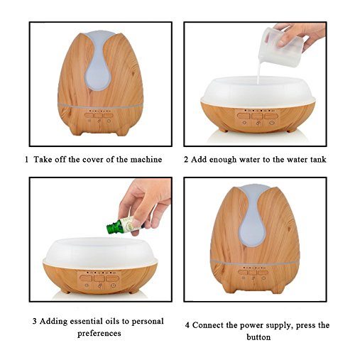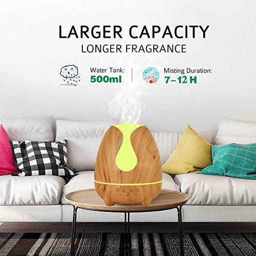 500Ml Essential Oil Diffuser, 7 Colors And Cool Mist Humidifier Aroma Lamp Design-Wood Grain Aromatherapy Diffusers For Kids Bedroom Living Room Study...