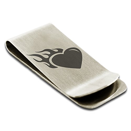 (Tioneer)/Accessories/Wallets, Money Key Organizers/DIRECT FROM USA/Stainless Steel Flaming Heart Engraved Money Clip Credit Card Holder