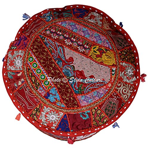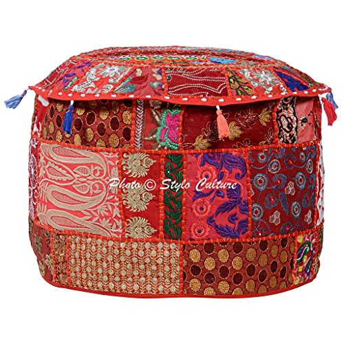 Studio : Stylo Culture Publisher : Stylo Culture Product Description Stylo Culture presents a beautiful ethnic Ottoman Pouf Cover studded with embroidery. In this cover vintage embroidered fabric patches are patched and stitched together at random to create a collage like effect and decorated with all kinds of colored threads, patchwork, raised colored thread work and embroidery in intricate designs with beautiful mirror tassel work. It is a beautiful "Khambadiya" ottoman pouf cover made by artisans in Barmer, India. Witness the exquisite embroidery and thread work on a vibrant cotton backing, creating a stunning collage bursting with gorgeous patterns and colors! PLEASE NOTE THAT IT IS A COVER ONLY AND THE INSERT IS NOT INCLUDED. The pouf cover has a zipped closure at the bottom which can be used to stuff the cover with cotton. The filling can be of cotton, old clothes, beans used in the bean bags or simply you may get it filled from the cotton workers available in your locality. The pouf cover will brighten up the living space in traditional colors. SINCE THE POUF COVER IS MADE FROM VINTAGE FABRIC PATCHES, EACH POUF COVER IS UNIQUE. THERE WILL BE VARIATION IN THE PATCHES HOWEVER THE BASE COLOR OF THE POUF COVER WILL REMAIN SAME. THE UNIQUENESS OF THE PATCHES IS THE SPECIALTY OF THE PRODUCT AS NO TWO POUF COVERS ARE ALIKE. 0
