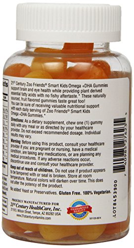 -. Title : 21st Century Zoo Friends Smart Kids Omega Plus Dha Gummies, Orange, Lemon and Cran-orange, 60 Count