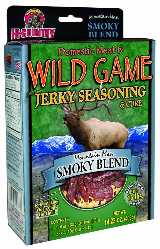 ReleaseDate : 2010-10-13 Studio : Hi Country Publisher : Hi Country Binding : Sports Product Description Mountain Man Smoky Blend gives the perfect hint of smoke flavor to our original recipe. Hi-Country Mountain Man Smoky Blend is a custom formulated combination of: Sugar, Salt, Spice, Garlic, and Natural Smoke Flavor. Each Kit contains commercial grade ingredients, seasonings, and all the cure necessary to process up to 16 lbs. of meat; as well as an illustrated instruction booklet that contains detailed color photos and easy-to-follow instructions for making whole muscle jerky and ground formed jerky. Everything you need to turn your Wild Game or Domestic Meat into delicious homemade jerky! Since 1976 Hi-Country has been producing premium grade meat snacks under USDA inspection and the continued lieadership of Hi-Country's founder and president, Jim Johnson. At last, Jim has decided to begin sharing some of his best kept meat processing secrets and recipes with the public. -- Jim's long time love for the outdoors and his extensive knowledge of the meat industry has made it a natural choice for Hi-Country to become deeply involved with the creation of a consumable products line that the home meat processor can use to successfully make high-quality wild game, bird, and fish value added products. -- Hi-Country has graphically and functionally designed these products to project the spirit of more fully utiliizing the wide game harvested each season by hunters and fishermen. 0