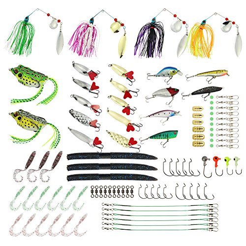-. Title : Kbnian 102pcs Fishing Lures Fishing Baits Tackle Set Including Plastic Worms Jig Crankbaits Spinnerbaits Frogs Soft Topwater Lures , and More Fishing Gear Lures Kit Set with Free Tackle Box