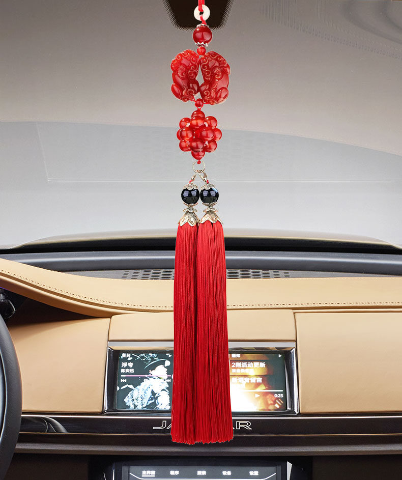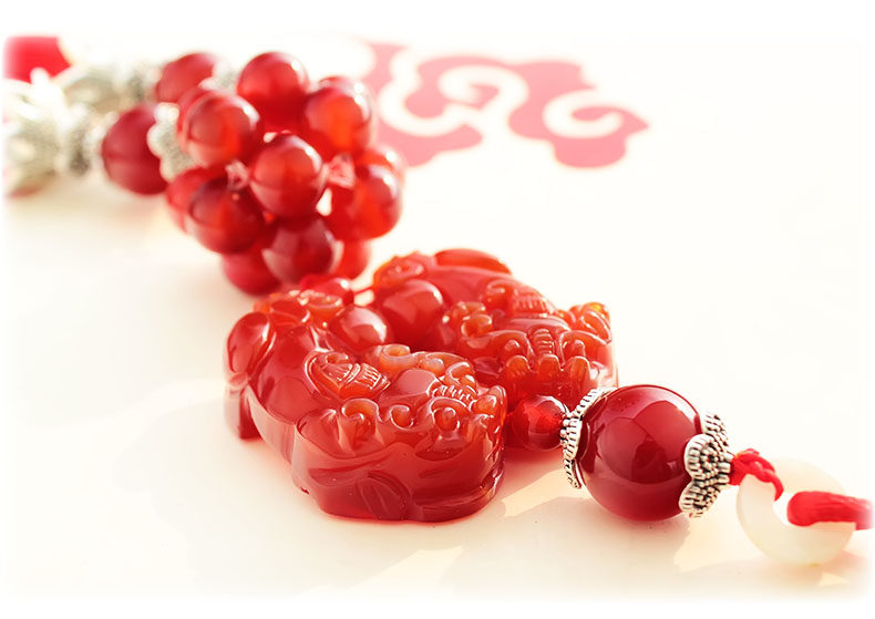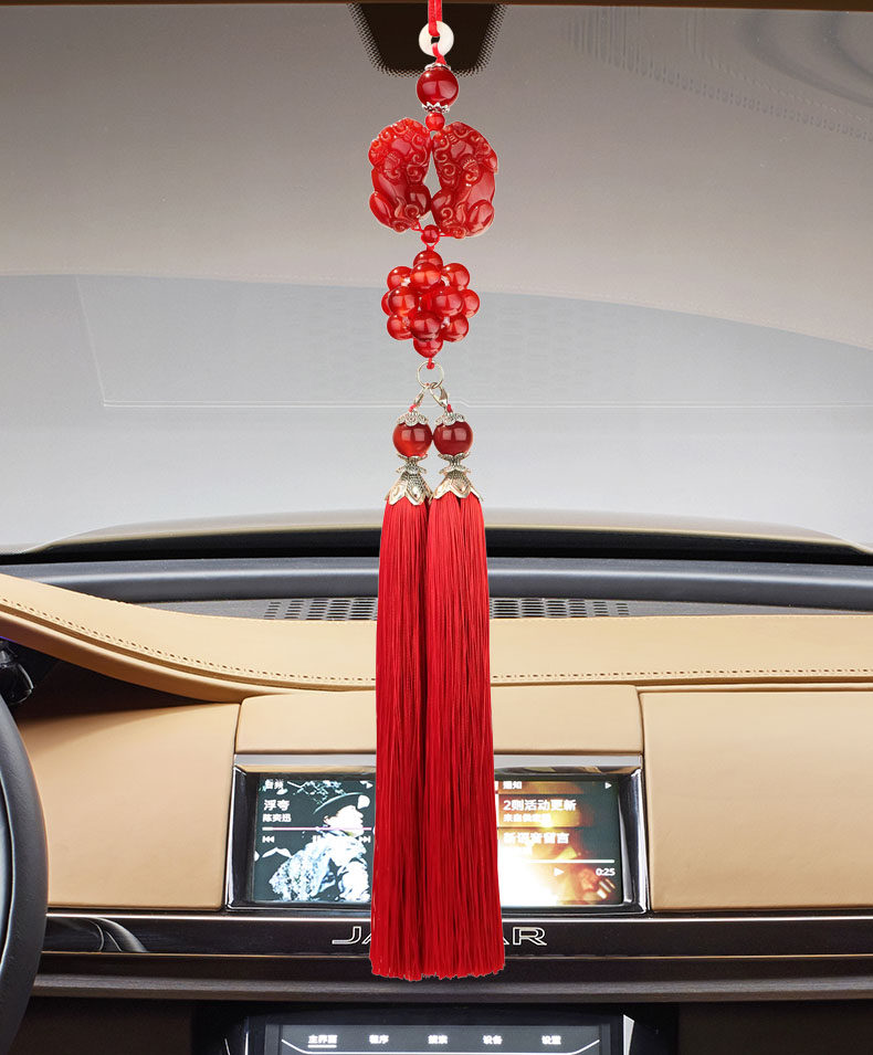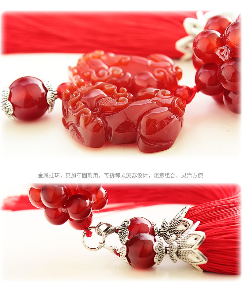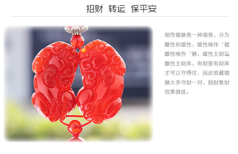 红韵红玛瑙保平安汽车挂件高档双貔貅车用挂内饰用品招财车载吊坠