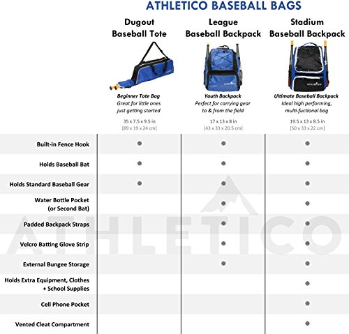 Athletico Baseball Tote Bag - Tote Bag for Baseball, T-Ball & Softball Equipment & Gear for Kids, Youth, and Adults | Holds Bat, Helmet, Glove, & Shoes | Fence Hook (Blue)