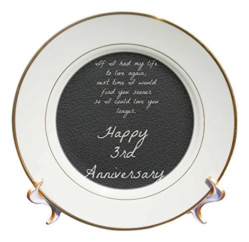 3dRose cp_221894_1 3rd Anniversary Love You Longer on Faux Leather-Like Background Porcelain Plate, 8"