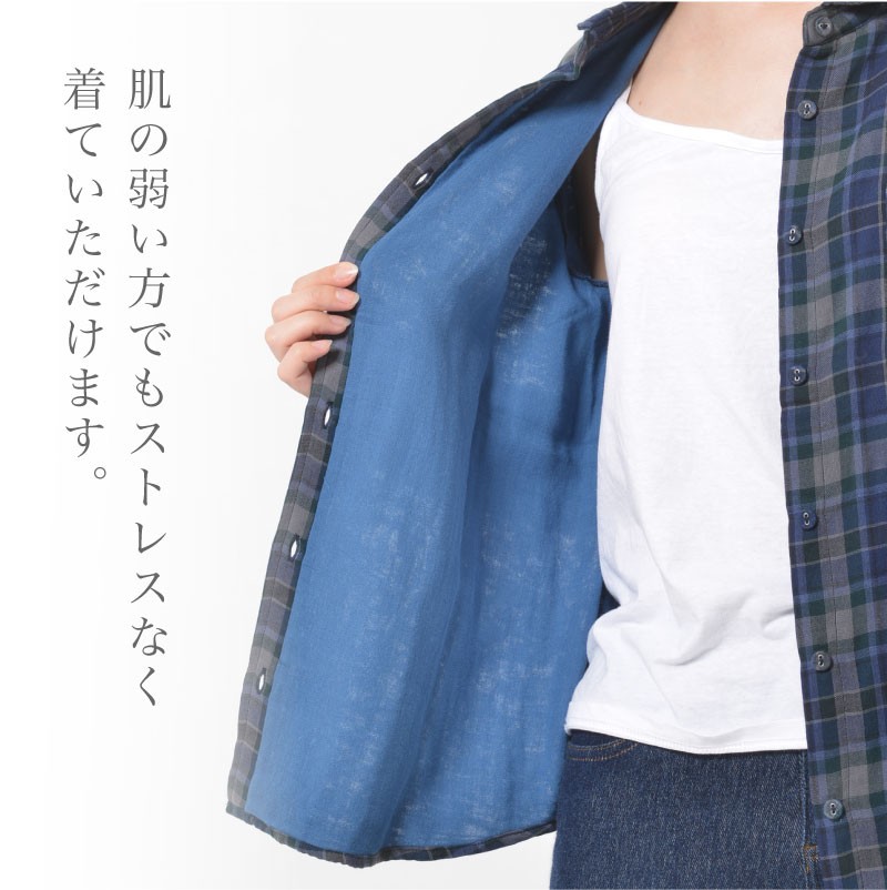 洗濯をするたびに、やわらかくなり、肌に馴染んでいきます。肌の弱い方でもストレスなく着ていただけます。