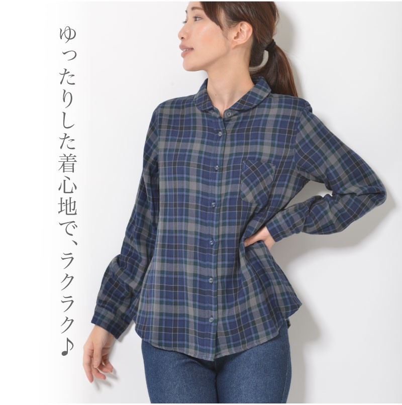 丸衿なので、フェミニン度をUPしてくれます。ゆったりした着心地で、ラクラク♪