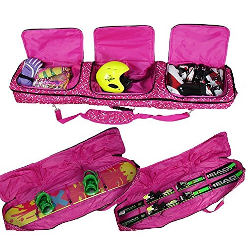 Material: Oxford fabric 100% Polyester Size: 166cm/180cm Three independent external storage pockets,waterproof. One main zipper pocket for snow/skis board.