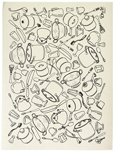 Swedish Treasures Dry-it! Drying Cloth, My Kitchen in Black, For Dishes, Produce and More, Super Absorbent, Reusable, Biodegradable, All-purpose