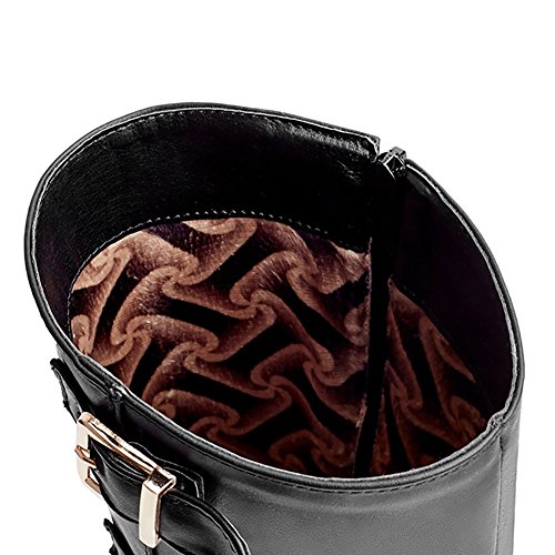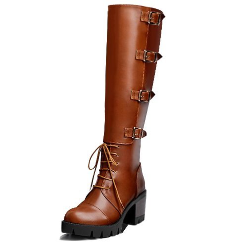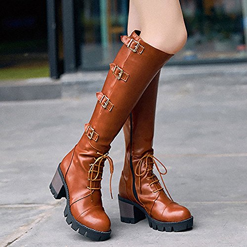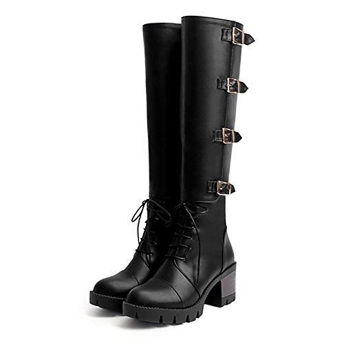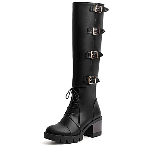 (Odema)/Women's/Boots/DIRECT FROM USA/Odema Women's Leather Knee High Bootie Zip Platform Chunky Heel Combat Martin Boots