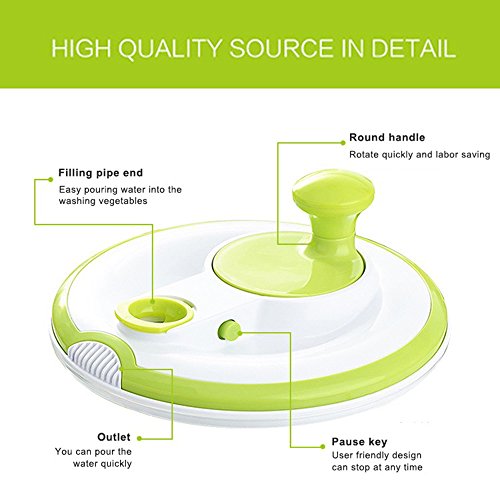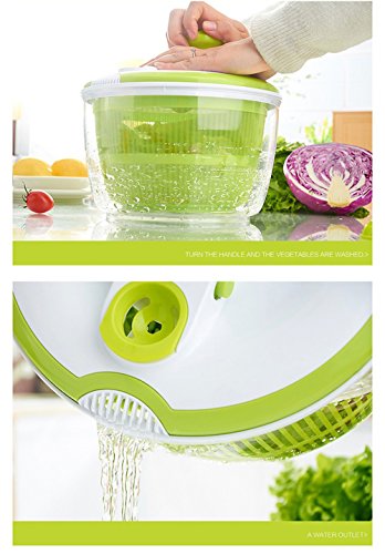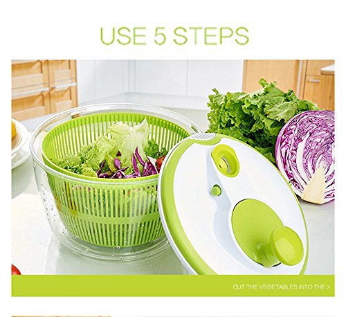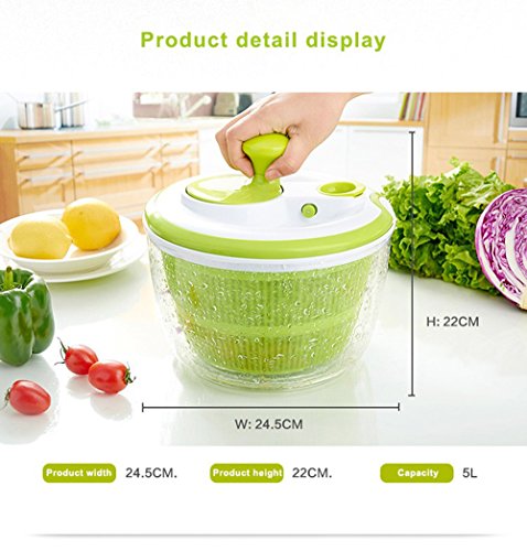 Vegetable and Salad Spinner 5L - Best Salad dryer strainer with Storage Lid, Locking Lid and Pouring Spout - Lager -Simple Salad mixer - Easy Clean - Salad Tossers Mixing Salads Has Never Been More Easier - And FUN - HIGH QUALITY SALAD SPINNER: This professional salad spinner is guaranteed to be the best that you have used - MATERIAL: Made from high quality plastic. - BENEFITS: Make great tasting caesar salads, tossed fresh green salads with your favourite dressings, fruit cocktails or any recipe you want to make. - EASY AND READY TO USE:This easy to use product will separate the liquids from your salad with little to no effort. - EASY TO CLEAN: The spinner is easy to clean and can be used in the top rack of the dishwasher GreenMark's salad spinner helps you make tasty and healthy salads without any herculean effort. This spinner is really easy to use and can be used by children as well as adults with ease as you just need to rotate the handle and the spinner does the rest. The spinner has a wide base which allows it to remain stable on different surfaces and the handle can be turned using just one hand. The bowl can itself be used as a salad bowl which makes sure nothing stands in your way of enjoying a healthy and green salad. 0 |