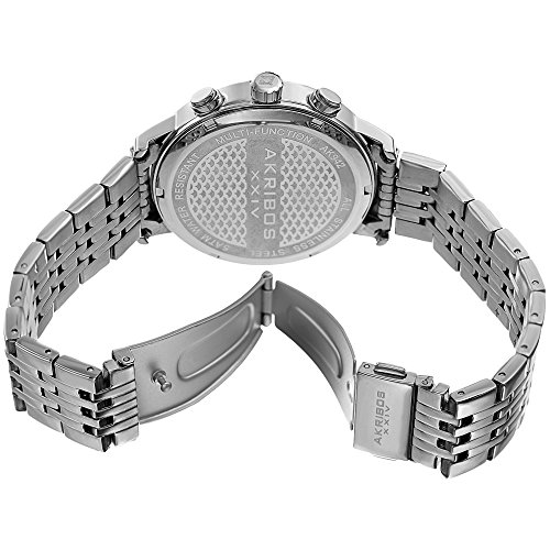 -. Title : Akribos XXIV Men's White Dual Time Zone Sub dials with Blue Dial and Silver-Tone Case on Silver-Tone Stainless Steel Bracelet Watch AK942SSBU