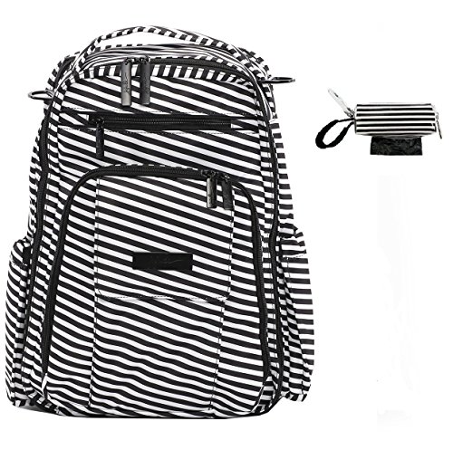 The Ju-Ju-Be Onyx Collection Be Right Back Backpack Diaper Bag is chic, smart and functional with added innovation and versatility. The Be Right Back is everything you want in a backpack diaper bag, but with stylish design, ergo straps and breathable mesh to keep you comfortable. The Be Right Back is great for adventures, day trips, or everyday outings. The lining is protected with Agrion natural treatment, which inhibits and reduces the growth of odor causing bacteria, mold and mildew. The outer fabric is treated with Teflon fabric protector, making it easy to repel stains and keep it clean. The front "mommy" zippered pocket is large enough to hold smartphones, wallets, keys and other personal items. Inside are (2) smaller pockets with a key fob stretch cord and a sunglass holder. A small external zippered pocket is constructed with soft felt that's perfect for small delicate items. The main zippered pocket is large enough for diapers, wipes, extra clothes and other items needed when you're on the go. "Smart" pockets are located on the front and top of the bag, perfect for storing additional diapers or wipes with easy accessibility. The back zippered pocket has an 11.5-inch opening that's large enough for your tablet or children's books and includes a matching memory foam changing pad. Bottle pockets are located on either side of the bag and insulated to keep your items hot or cold. The ergonomically curved shoulder straps with textured fabric underneath prevent the straps from sliding off your shoulders. This bag is machine washable and measures 12-inches by 16-inches by 5-inches in size. The Chrome is all grey with red and white pinstripe lining. The print is accented by all black, metal hardware. All Ju-Ju-Be Bags come with a Lifetime Limited Warranty against manufacturing defects when purchased from an Authorized Ju-Ju-Be Dealer. Authorized Dealers can be found in the images. Founded in 2005, Ju-Ju-Be is a Southern California company that uses science, style, and attitude to create diaper bags, purses and other fashionable accessories. Ju-Ju-Be assimilated the most advanced technology possible to create a stylish and intelligent product line that's unrivaled in the industry.Feature