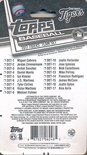 Detroit Tigers 2017 Topps Baseball EXCLUSIVE Special Limited Edition 17 Card Complete Team Set with Miguel Cabrera, Jordan Zimmermann & Many More Stars & Rookies! Shipped in Bubble Mailer! WOWZZER!