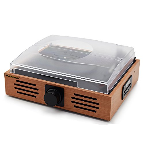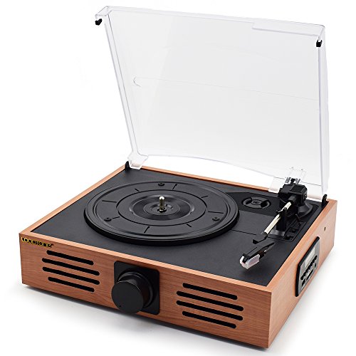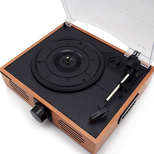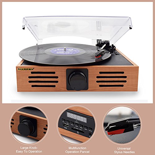 LoopTone 3-Speed Belt Drive Turntable with Speakers , Supports Stereo FM Radio , USB/SD Encode , Mp3 Playback , Headphone Jack and RCA line Output ,natural wood