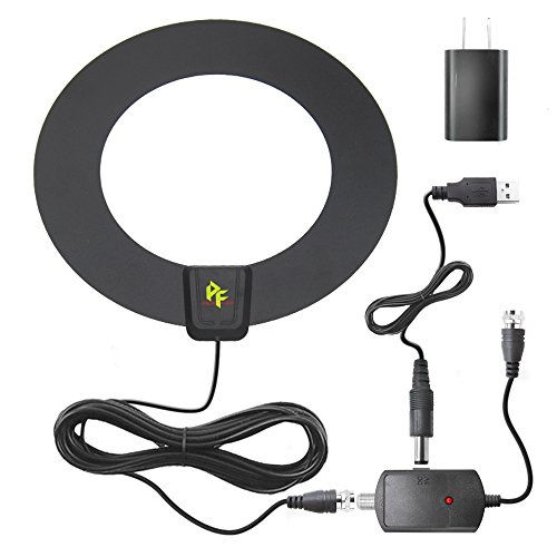 Studio : Pigflytech Inc Publisher : Pigflytech Inc Binding : Electronics Product Description Paper thin Indoor TV Antenna Annular 1. It can be installed in 3 simple steps: just connect the coaxial cables and AC adapter, position the antenna, scan for channels on your TV, and enjoy. 2. Paper-thin design delivers full 1080p HD to any digital-ready television. The combination of its unobtrusive design and powerful reception capabilities make the Leaf a top choice in any home. There are no exposed or distracting antenna parts.The Leaf can be easily hidden behind a picture, bookshelf, or television. 3. It makes easy to watch your favorite shows and ever-increasing monthly expenses. It is an economical solution to gain access to free TV signals and free TV viewing within a 50 mile range of signal sender. 4. 12-month Warranty: We offer our HDTV antenna with one year warranty for quality-related issues. 5. 30 Days Money-Back Guarantee: For 30 days after receiving the item, return your undamaged Vikeri items and you will receive a full refund or replacement DETAILS: Type: Indoor HDTV Antenna Material: PVC Size (L x W): 33 x 30cm (1inch=2.54cm) Extended Range: up to 50 miles Frequency Coverage: VHF-HI 170-240 MHz UHF 470-860 MHz Impedance: 75Ω Operating Temperature:-45-185℉(-40-85℃) Coaxial Cable Length:16.5ft (5m) USB Cord Length: 3.3ft (1m) Power Requirement: 5V/30mA Package: 1x HDTV antenna 1x Signal amplifier coaxial cables 1x 3M double-faced adhesive tape 1x User manual 0