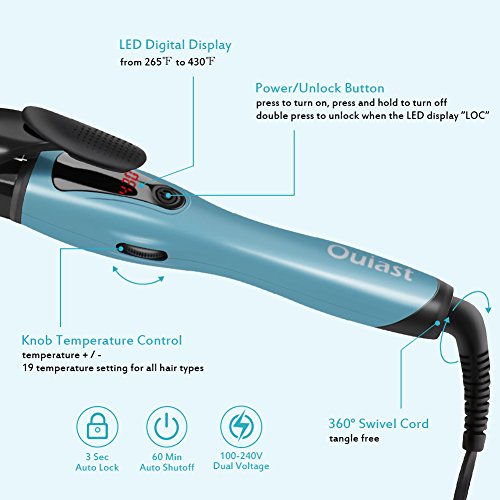 SAFE & EASY TO USE: Universal dual voltage of AC 100 - 240V, easier knob control to adjust temperature, 3 sec auto temperature lock to avoid wrong pressing during curling, 60 min auto shutoff function give you extra piece of mind