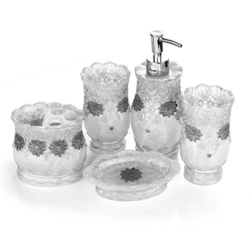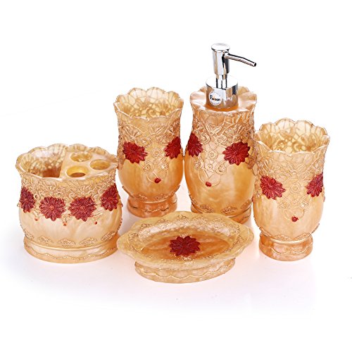 -. Brand : Fuloon -. Feature : 5 piece Bathroom set for indoor / Soap dish, Soap Dispenser, toothbrush holder and tumbler / Environmental health , durable and not easy to break / Made out of resin to withstand everyday usage / Easy to clean design,Ideal for home decoration or gifts -. Label : Fuloon -. Manufacturer : Fuloon -. Model : HONE26 -. MPN : HONE26 -. PackageQuantity : 1 -. PartNumber : HONE26 -. ProductGroup : Home -. ProductTypeName : HOME_BED_AND_BATH -. Publisher : Fuloon -. Studio : Fuloon -. Title : Fuloon Vintage Classic Luxury Bathroom Bath 5PC Set 3D Decor Accessories Collection Set for Hotel & Home