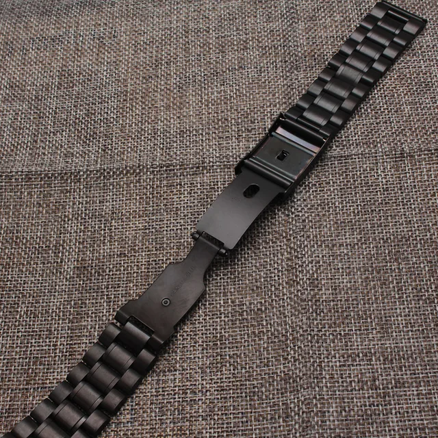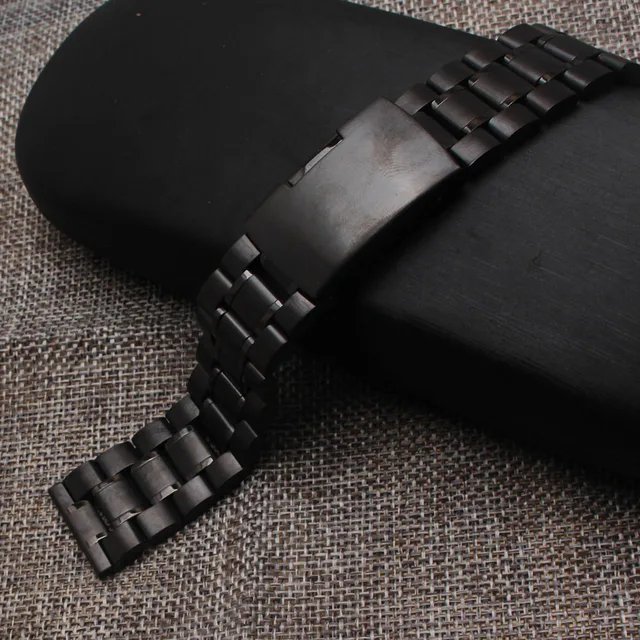| [해외] 블랙 18 미리메터 20 미리메터 22 미리메터 24 미리메터 스테인레스 스틸 금속 시계 스트랩 팔찌 사이드 버튼 스트레이트 엔드 손목 밴드 액세서리 |