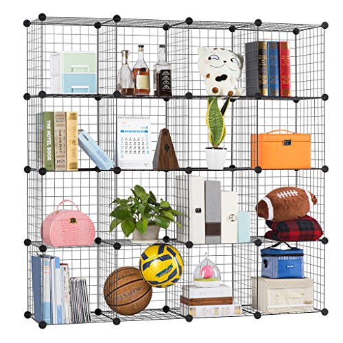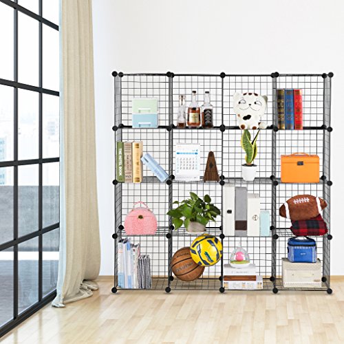 STURDY BOOKCASE: made of resistant wire grids, this 16-cube bookcase can hold up to 44 lbs. (20kg) per cube, allowing you to place your books, paperwork, clothes, bedding, towels, toys, bags, accessories and more