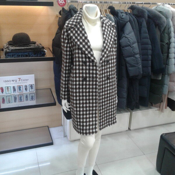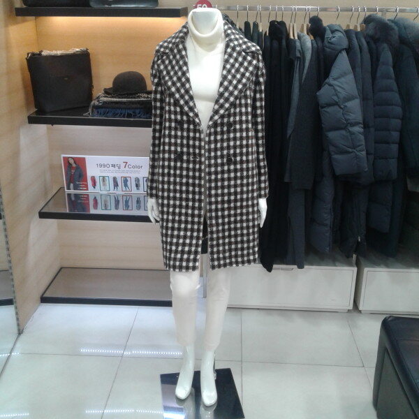 쉬즈미스 베이직한 디자인으로 깔끔하여 어디에나 무난하게 잘 어울리는 모헤어 체크 더블버튼 코트예요