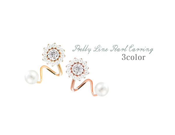 큐빅과 진주가 만나 청초한 꽃모양을 만들어 준 프리티 라인 진주 귀걸이