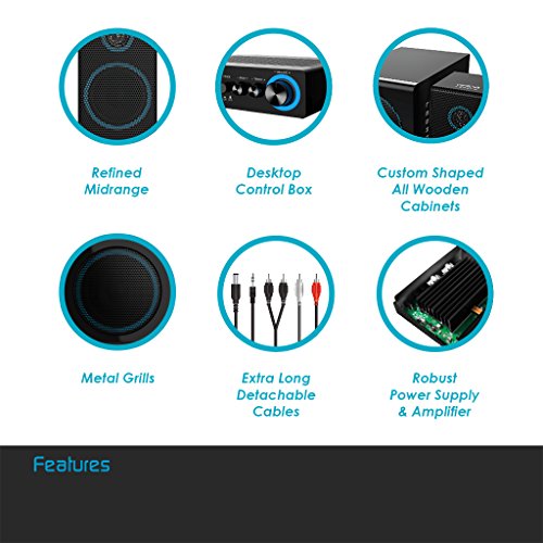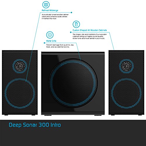 The Deep Sonar 300 is the perfect upgrade for any desktop speaker system. This compact 3-piece system brings unparalleled refined midrange that puts others in its class to shame. The Deep Sonar 300 transforms your desktop PC into an interactive multimedia center. Two 7.5 watt satellite speakers deliver clear, consistent sound while its 18 watt subwoofer provides low-end bass from your music and movies.Feature
