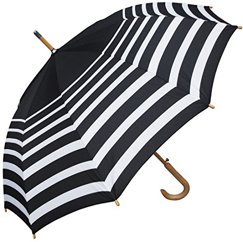-. Title : RainStoppers W043 Auto Open Striped Arc Umbrella with Hook Handle, Black/White, 48"