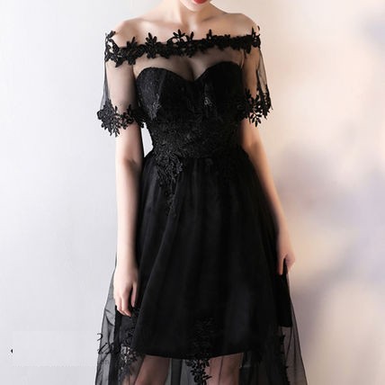 オフショルダー ケープ 刺繍 ロング丈 ドレス レース 花柄 刺繍 フレア エレガント ブラック セクシー 上品 可愛い お呼ばれ服 drgz0559