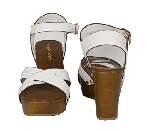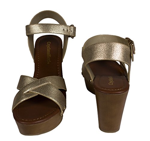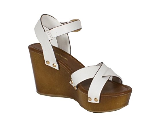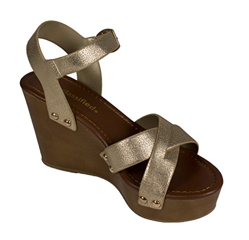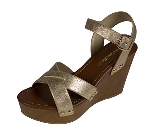 Product DescriptionLustacious Women's Open Toe Strappy Faux Wood Wedge Heel Sandal with Side Buckle0