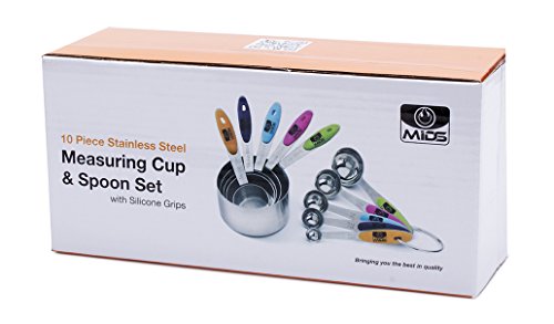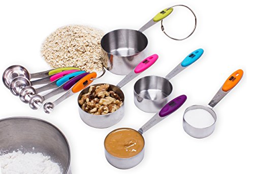 - 10 piece measuring set for all cooking and baking needs: 1 Cup, 1/2 Cup, 1/3 Cup, 1/4 Cup, 1/8 cup, 1 Tbsp, 1/2 Tbsp, 1 tsp, 1/2 tsp & 1/4 tsp sizes