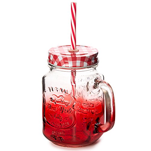 Jazzy Transparent Red Mason Jar with Straw