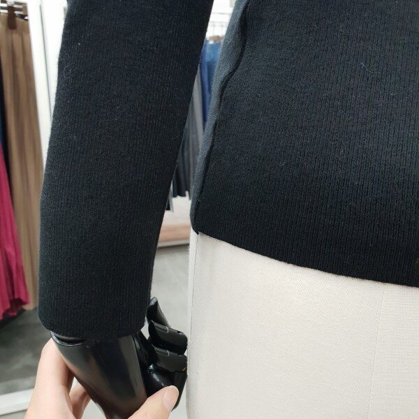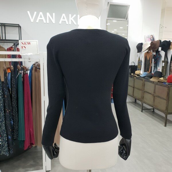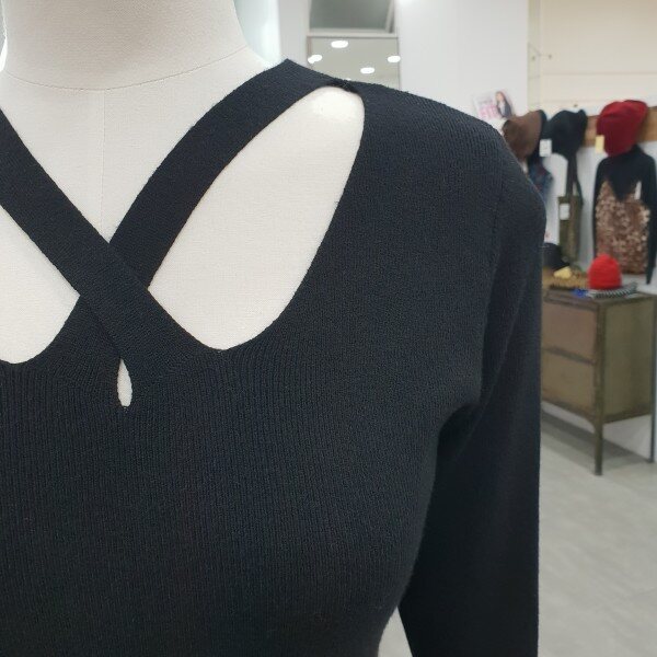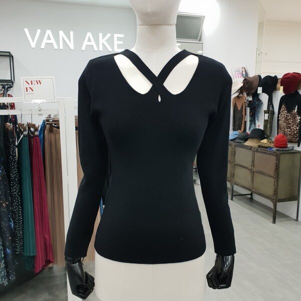 엑스 크로스 트임이 은은한 섹시미를 더해준 슬림라인 블랙니트