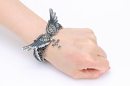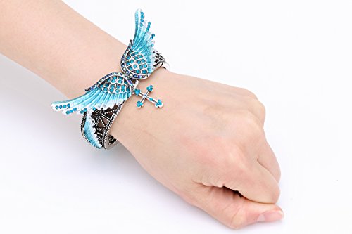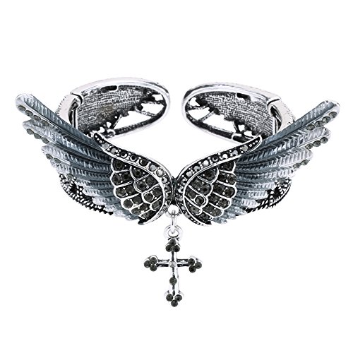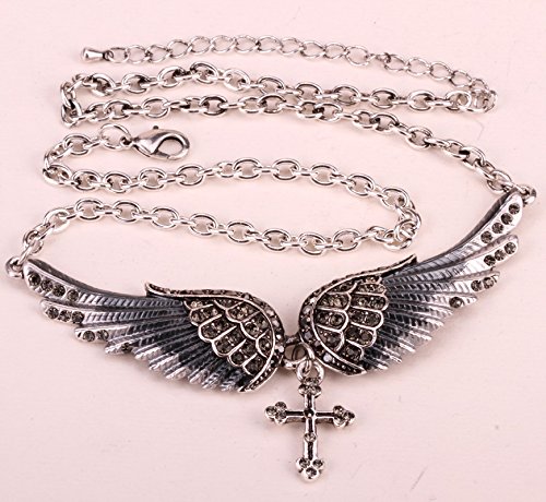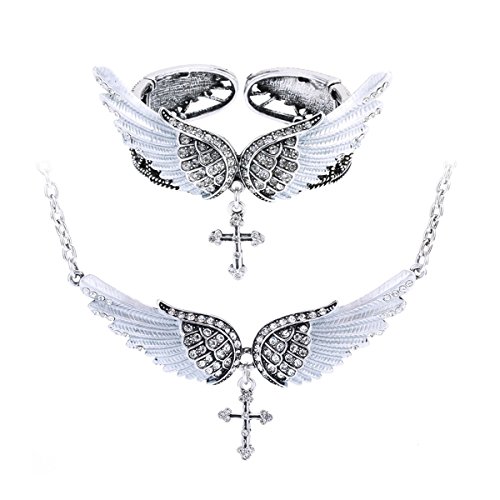 -. Feature : Alloy with antique silver plated,lead and nickle free / Adjustable chain,inside circumference (18+2) inch / Necklace Bracelet :Wing length 1.9inch,wing width 0.6inch;cross length 1inch / Sparkling crystals and AB crystals:some stones show different colors from different view,we call them AB crystals. / Come in a jewelry box.