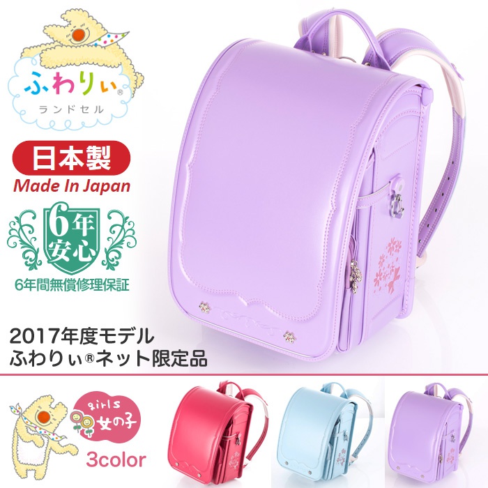 후와리 란도셀 소녀 2017년도 모델 WEB통판 한정 오리지날 란도셀 6년 보증이 붙어 있음【A4플랫 파일 대응