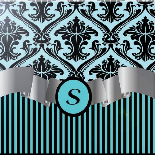 Rikki Knight RK-12intilec-2193 12" X 12" Letter "S" Sky Blue Damask Stripes Monogrammed Design Ceramic Art Tile