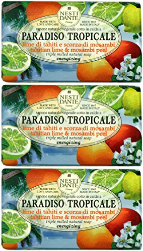 Saponeria Nesti Firenze: "Lime di Tahiti e Scorza di Mosambi" Triple Milled Perfumed Natural Soap, "Paradiso Tropicale" Line * 8.8 Ounces (250g)...