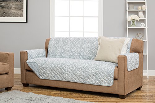 -. Feature : PROTECT: This furniture protector shields and protects sofas, loveseats and chairs from spills, stains, dirt, grime, wear and tear. It's perfect for homes with children and pets! Note: This is NOT RECOMMENDED FOR LEATHER. / PERFECT FIT: Our Sofa Furniture Protector measures 75 inches x 110 inches and fits most sofas 96 inches long; our Loveseat Furniture Protector measures 75 inches x 88 inches and fits most loveseats 73 inches long; and our Chair Furniture Protector measures 75 inches x 65 inches and fits most armchairs 34 inches long. PLEASE MEASURE BEFORE PURCHASING. See measuring guide in photos. / STAYS IN PLACE: Includes ADJUSTABLE STRAPS to secure it in place and help prevent slipping and sliding. / REVERSIBLE, COMFORTABLE, STYLISH AND EASY CARE: Features a gorgeous P.R.Inted pattern on one side and a beautiful solid color on the other. It's like getting two furniture protectors for the P.R.Ice of one! Beautiful quilted texture, lofty poly fill and soft suede-like finish for designer style and ultimate comfort. Stain resistant and MACHINE WASHABLE for your convenience. 100% SATISFACTION GUARANTEED: 10-year "no questions asked" guarantee. Buy with confidence! / IMPORTANT: This product is DISTRIBUTED IN THE USA in NEW CONDITION by Home Fashion Designs ONLY, so please check "sold by" seller name. If your order arrives from an overseas shipper, it is NOT a Home Fashion Designs product. Upon receiving your order, PLEASE LOOK FOR THE HOME FASHION DESIGNS TRADEMARK on the packaging insert. We offer full refunds on items returned within 30 days, however this and all post-purchase customer service applies ONLY to new purchases from Home Fashion Designs.