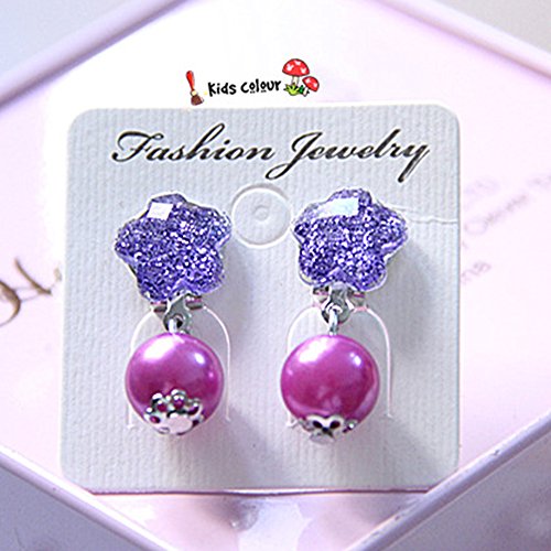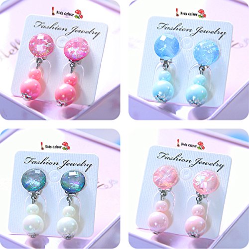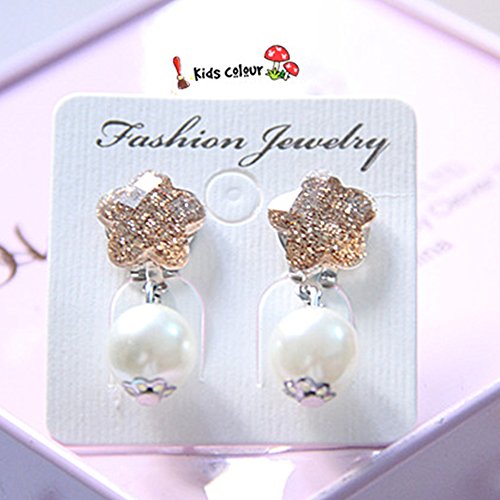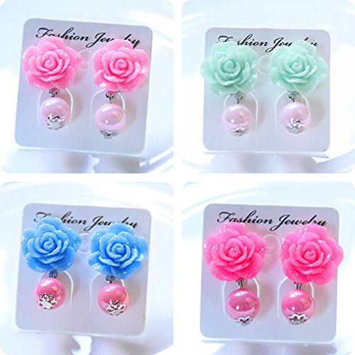 Elesa Miracle Girl Party Favor Birthday Gift Pretend Play Princess Jewelry Set 4pc Flower-Shaped Pearl Clip-on Earrings Value Set